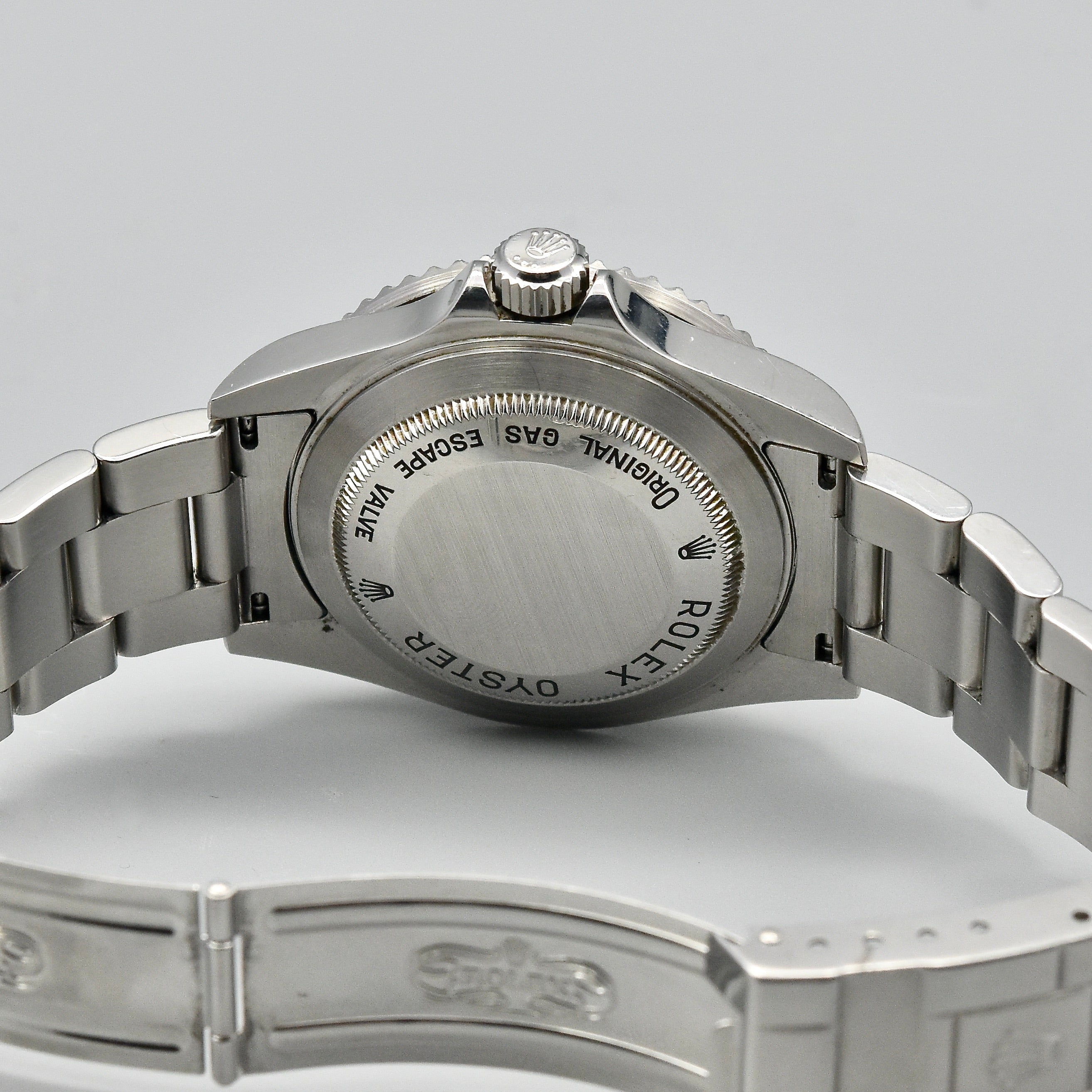 Très belle montre bracelet de plongée en acier sur bracelet Oyster en acier avec boucle déployante signée. Boîtier rond. Couronne et fond vissés. Lunette tournante graduée unidirectionnelle. Cadran noir avec index et aiguilles luminescents. Trotteuse centrale. Dateur par guichet à 3 heures. Mouvement automatique certifié chronomètre calibre 3135. Diamètre: 40 mm. Vendue avec son écrin, papiers, carte de décompression, outil..